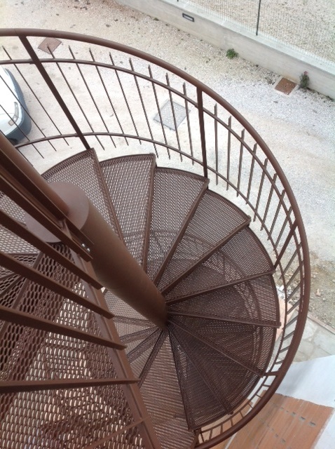 ealizzato completamente da noi si trova a Villa Pitignano Frazione del comune di Perugia . Si tratta di una nuova realizzazione . Il manufatto è sta realizzato con gradini pressopiegati e rete fils antiscivolo colonna centrale con elementi smontabili. zincato a caldo e verniciato a polveri termoindurenti per una durata eterna .